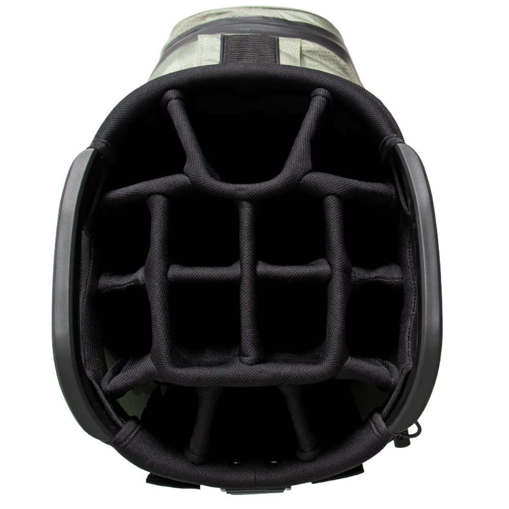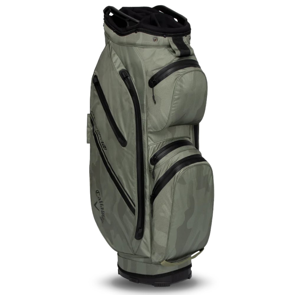 This Callaway Chase 14 Dry Cart Bag 2025, in camouflage green, is completely waterproof. Designed to make efficient use of space whilst keeping your golf equipment nice and dry. The 14-way top makes it easy to keep track of everything.