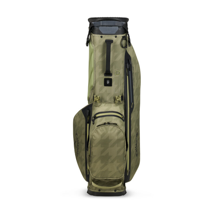 This olive green Callaway Fairway C HD Stand Bag 2024 in the sleek houndstooth pattern features a 4-way top element with full-length club dividers and 9 storage compartments. As a premium brand, Callaway has a lot of options when it comes to design and a high-quality image. Rightly so because if you also take a critical look at this stand bag you can certainly draw that conclusion. Its lightweight design (2.5 kg) makes this model very popular among golfers. Made of very sturdy and water-resistant material.