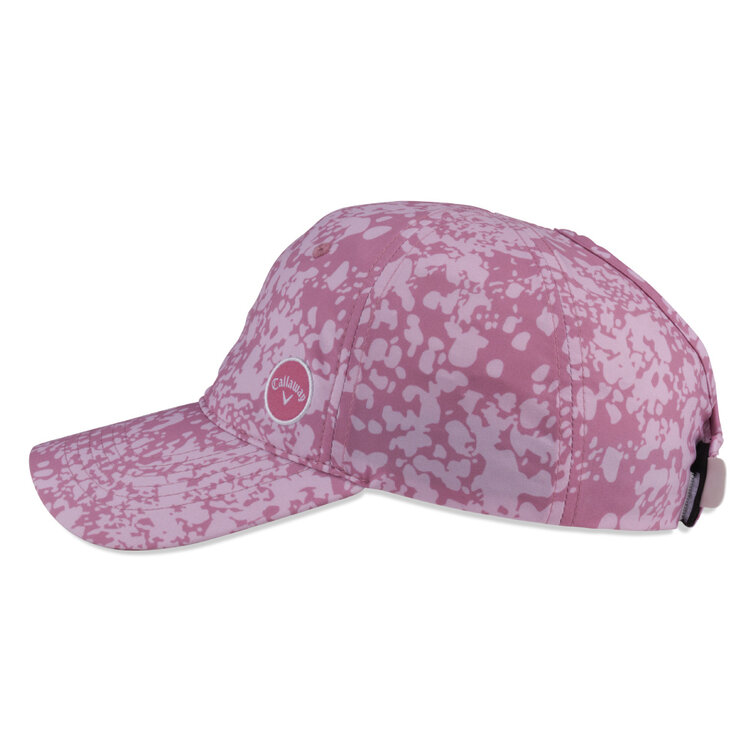 This Callaway Hightail ladies golf cap in the pink exotic design offers great comfort. Adjustable at the back using Velcro.
