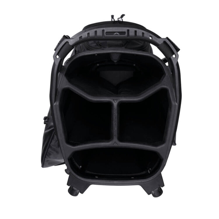 The Callaway Zero Double Strap Standbag is a very practical, luxyry golf bag with a 4-way top and comfortable carrying system. This black design golf bag has 7 storage compartments and a sturdy fold-out base. Extremely light! Only 1,4 kg.