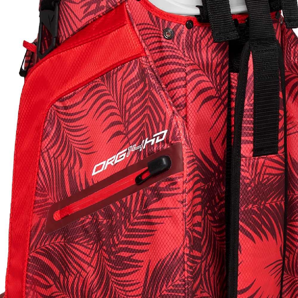 Decked out in the beautiful Red Palms design, this improved, waterproof Callaway Org 14 Hyper Dry Cartbag 2025 is one of the most complete cartbags on the market. Made from top quality materials and 'wallpapered' with practical details, wrapped in a beautiful, robust design. A phenomenon in the industry thanks to its simple design. Equipped with 8 storage compartments and a 14-piece compartment division with continuous club dividers. Executed in red with palm tree print.