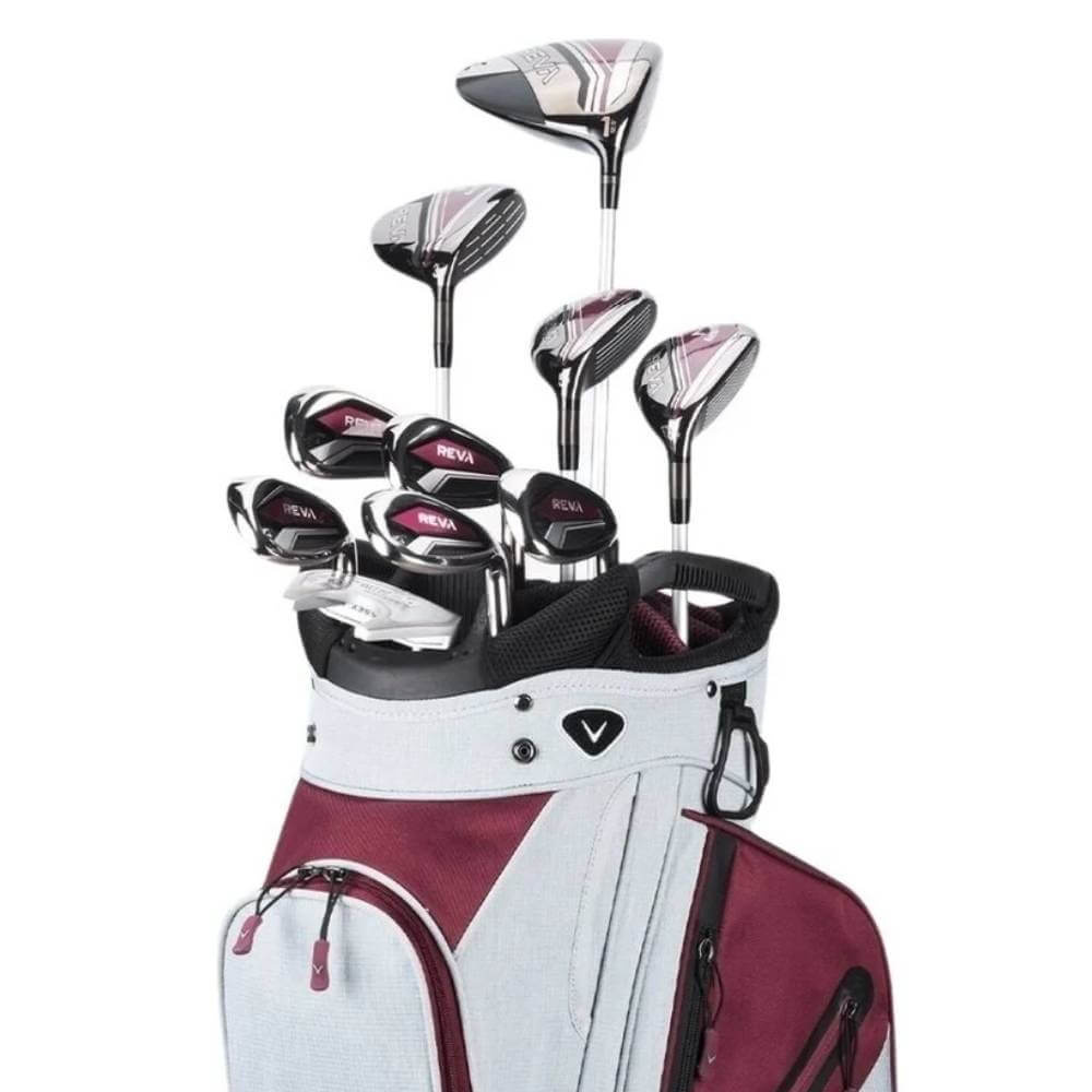 Callaway has drastically updated its successful Reva women's series of golf sets. Substantial steps forward in both technique and playability, as well as in design and use of materials, are evident in the process. One thing, however, has not changed. The target group for this Callaway Reva Eggplant Ladies Golf Set is still very broad: beginners to advanced golfers who are looking for a complete, premium quality golf set but don't feel like spending 'the big bucks' to do so. Comparing this type of ready-made Callaway 'boxed sets' with a Callaway set that you put together of your own choice from separately available premium clubs, you pay twice as much. In this segment, buyers of Reva sets consider quality more important than the lowest possible price and want to get on with a fine golf set for the time being. This charming Reva set in the chic black finish is therefore really recommended in this segment. The set is a whopping 16-piece: 10 clubs, 5 headcovers and a golf bag!