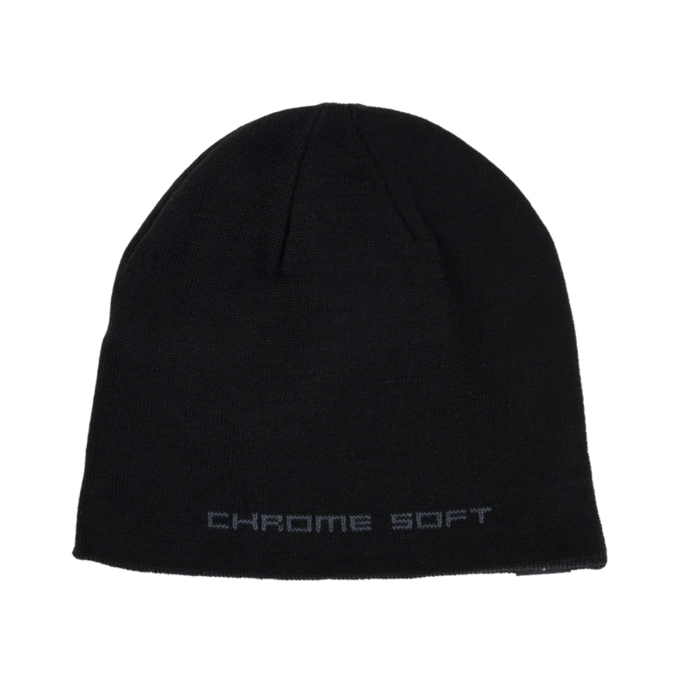 This beautiful Callaway beanie can be worn two ways, as you can wear it inside out. The outside of the beanie is black with grey accents and a Callaway label. The inside is all black with nice Callaway branding on the front and a slightly smaller Chrome Soft logo on the back.