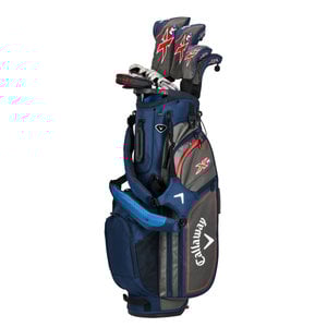 These Callaway sets come with a beautiful standbag. This is a sturdy, beautifully finished carry bag that can also be used on a golf trolley. The bag has a total of 9 storage compartments including one large, continuous clothing compartment, a ball compartment, a fleece-lined waterproof compartment for valuables, various accessory compartments and 2 mesh insert pockets for a bottle. Nice and light but with sturdy fold-out legs and equipped with well-adjustable, comfortable carrying system.