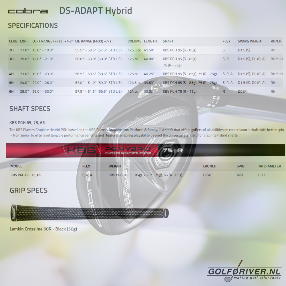 Building on the success of last year's DarkSpeed series, Cobra has introduced the DS-Adapt series of golf clubs (DS stands for DarkSpeed) anno 2025. It has to be said: they have turned out particularly beautiful. Besides, not only do they look much better, the technology has also had a substantial update. This has created a much more widely adjustable, more playable hybrid club. Absolutely highly recommended!