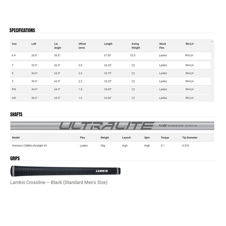 | Shaft | Cobra Ultra Lite 45 Graphite shaft |