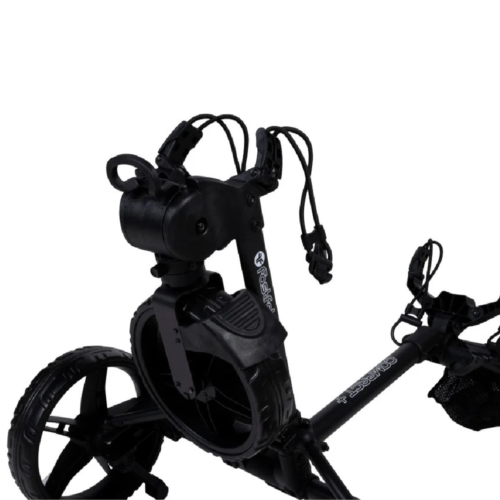 This is the handy foldable FastFold Compact + Golf Trolley. Sturdy, not too heavy and easily foldable into an extremely compact package. This top model looks great in black and has a huge list of handy details to make your round of golf comfortable!