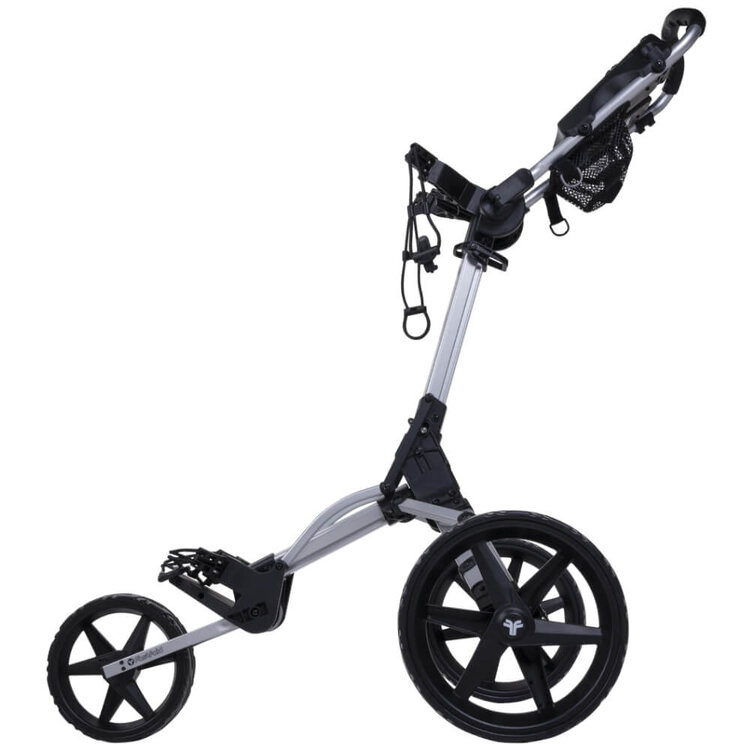 FastFold lives up to its name with the very quick and handy folding FastFold Smart Golf Trolley. Sturdy, not too heavy and simple to fold into an extremely compact package. This top model in silver looks great and has a very long list of useful details!