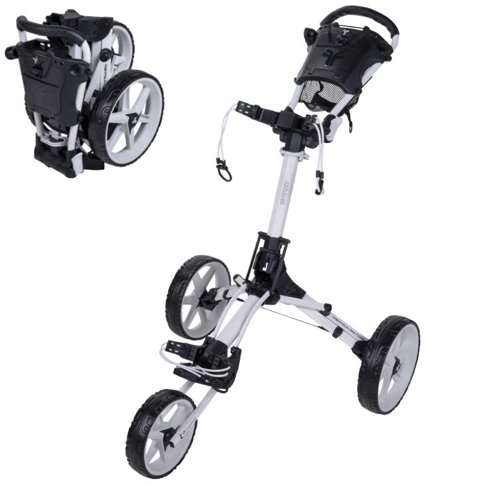 FastFold lives up to its name with the very quick and handy folding FastFold Smart Golf Trolley. Sturdy, not too heavy and simple to fold into an extremely compact package. This white top model looks great and has a very long list of useful details!