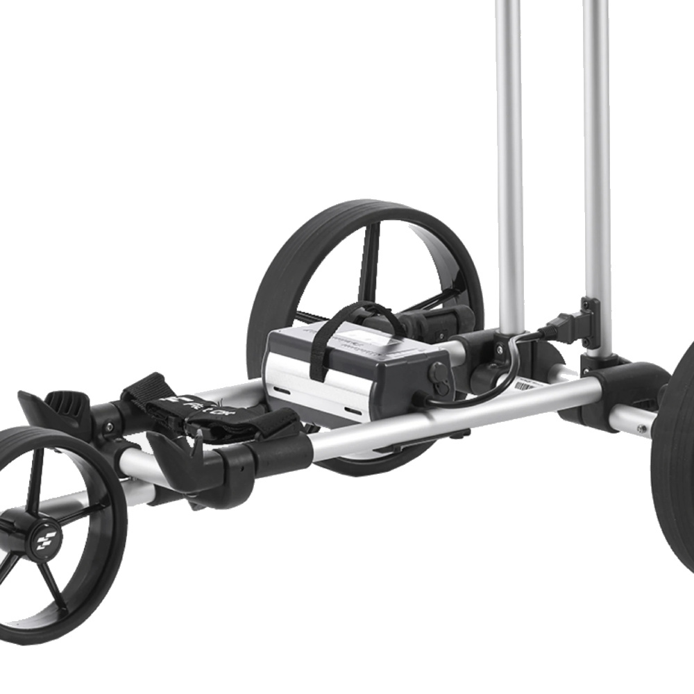 The FlatCat Gear-2 is equipped with 2 rear-wheel-mounted motors that do their job extremely quietly and powerfully. As for the included Lithium battery pack for these trolleys, you can go 36 holes your way, fine!