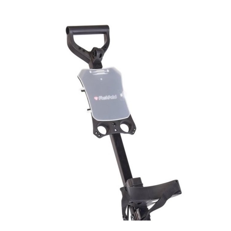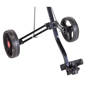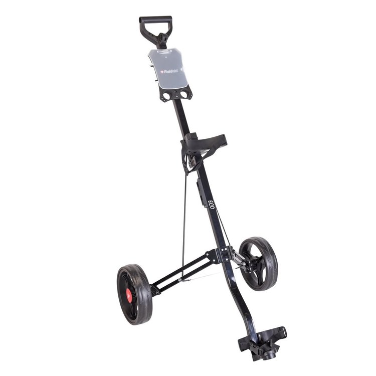 The price-quality ratio of this super-lightweight golf trolley is top. This simple-looking aluminium FastFold Eco 2 trolley is light and compact and drives very light thanks to the extra-large wheels with ball bearings.