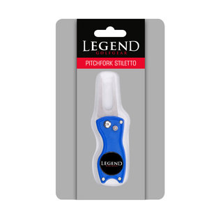 Highly played balls damage the green. Therefore, on every golf course you are obliged to have a pitch fork in your pocket to repair this. This Stilletto Pitchfork from Legend is collapsible and handy.... It also has a marker. Blue coloured version!