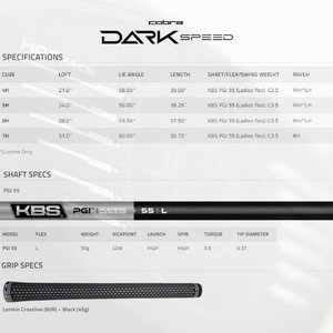 These Cobra DarkSpeed hybrids for ladies come standard with featherweight Cobra KBS PGi 55 graphite shaft and the fine Lamkin CrossLine UnderSize / Ladies grip.