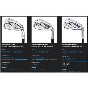 The Mizuno JPX925 Hot Metal Pro redefines the performance of an iron that combines power and speed of Nickel Chromoly 4335 with a newly designed CORTECH design where the face is 30% thinner and with a Contour Ellipse face that has a much larger sweetspot . Consistency of distance across the hitting zone has never been greater and predictable in the process, something that is sure to appeal to better golfers.