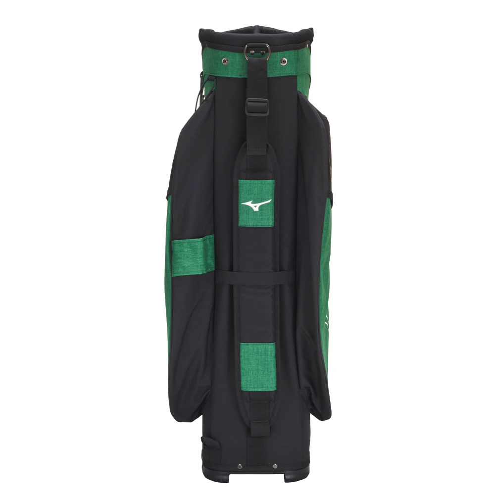 Nice and complete, that is this green Mizuno BR-D3C cart bag 2024. Spacious, luxurious, and equipped with all the features a good golf bag should have. With a 7-way top, and 10 storage compartments, this is a beautiful, spacious bag for your trolley.