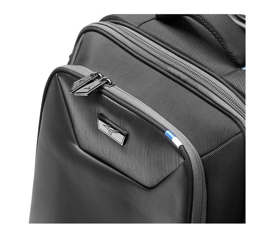 Luxurious and chic... Made of fine materials is this Mizuno Traveller wheeled suitcase. Perfect for tournaments or as a hand luggage trolley on the plane.