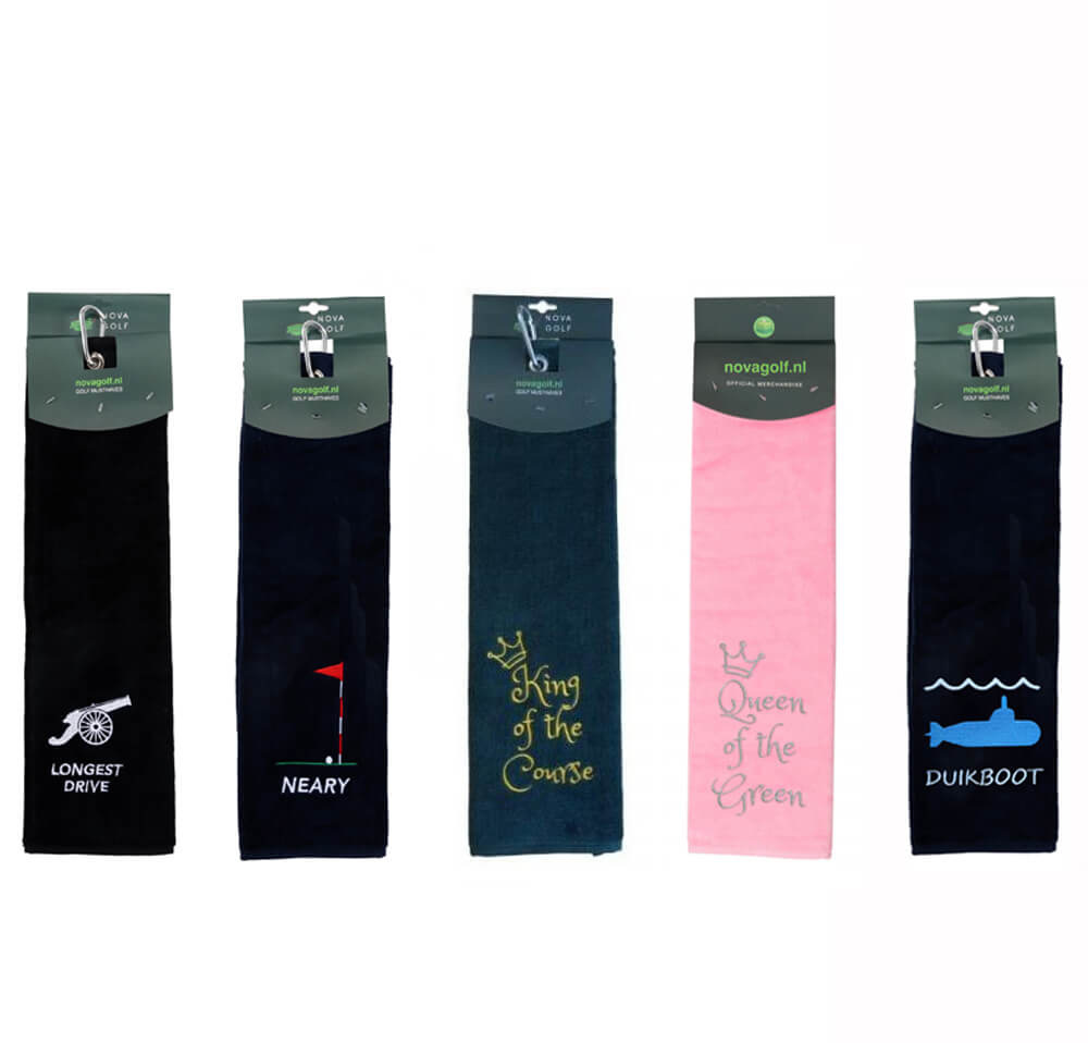 Are you organising a golf tournament and looking for original prizes? This Nova Golf Tournament Package is the solution! You can give away these five luxury Tri-fold golf towels with fun, embroidered titles as prizes at various events. For example: