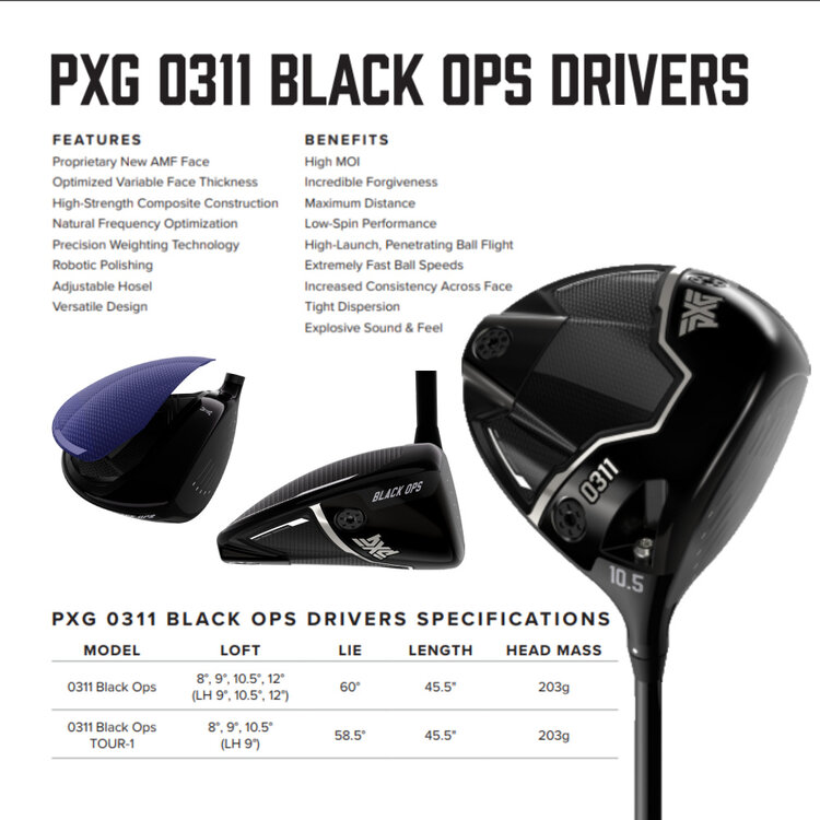 In this LEFT-HAND version, this PXG 0311 Black Ops Driver 2024 comes equipped with MCA Tensei AV Raw Blue 65 graphite shaft and black PXG/Lamkin Z5 Men's Standard grip.