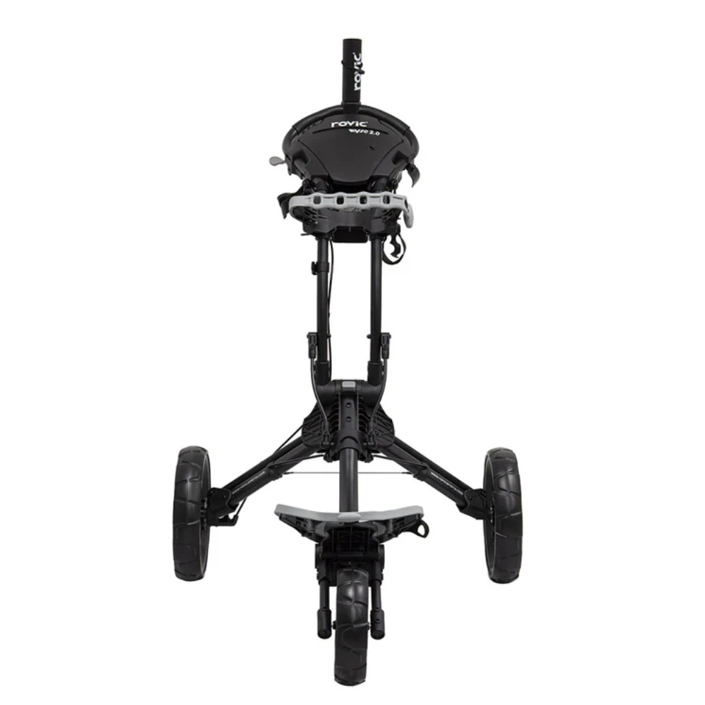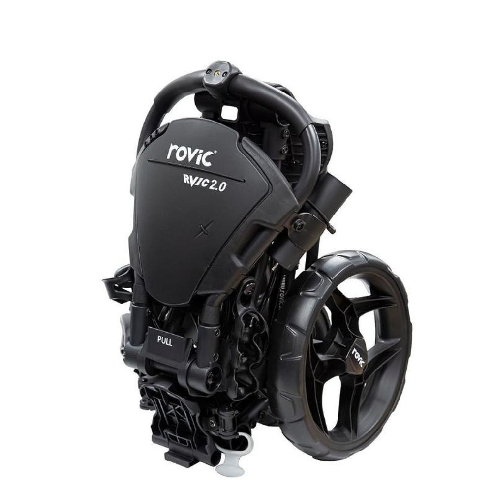 Rovic makes sturdy, handy golf trolleys that are very cleverly designed. As they are manufactured by Clicgear, they are often compared to that brand. In terms of functionality, that comparison with this RV-1C 2.0 golf trolley is entirely valid, as Rovic offers excellent value for money with this trolley. It doesn’t quite match the luxurious finish of the much more expensive Clicgear trolleys, but this Rovic trolley remains a definite recommendation in the slightly lower price segment. The folding system used in these trolleys is remarkably handy. It allows you to fold the trolley completely into a compact package with one quick, simple movement.