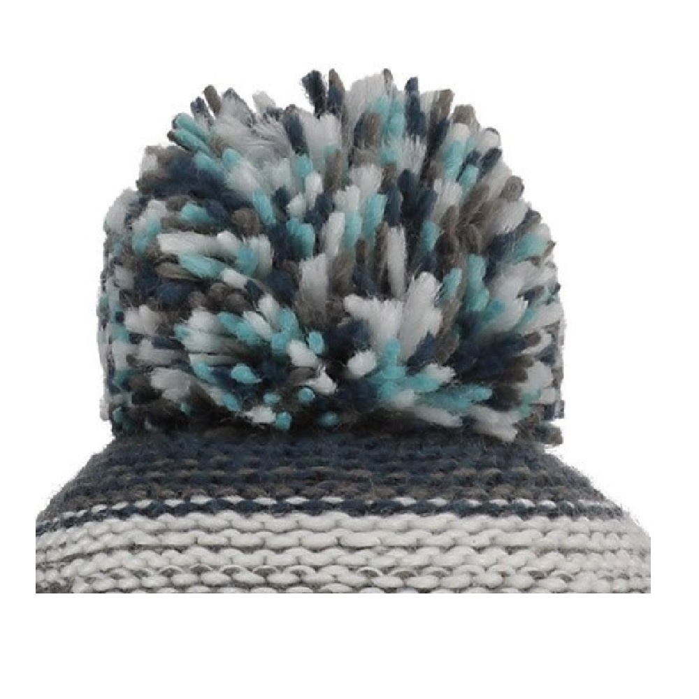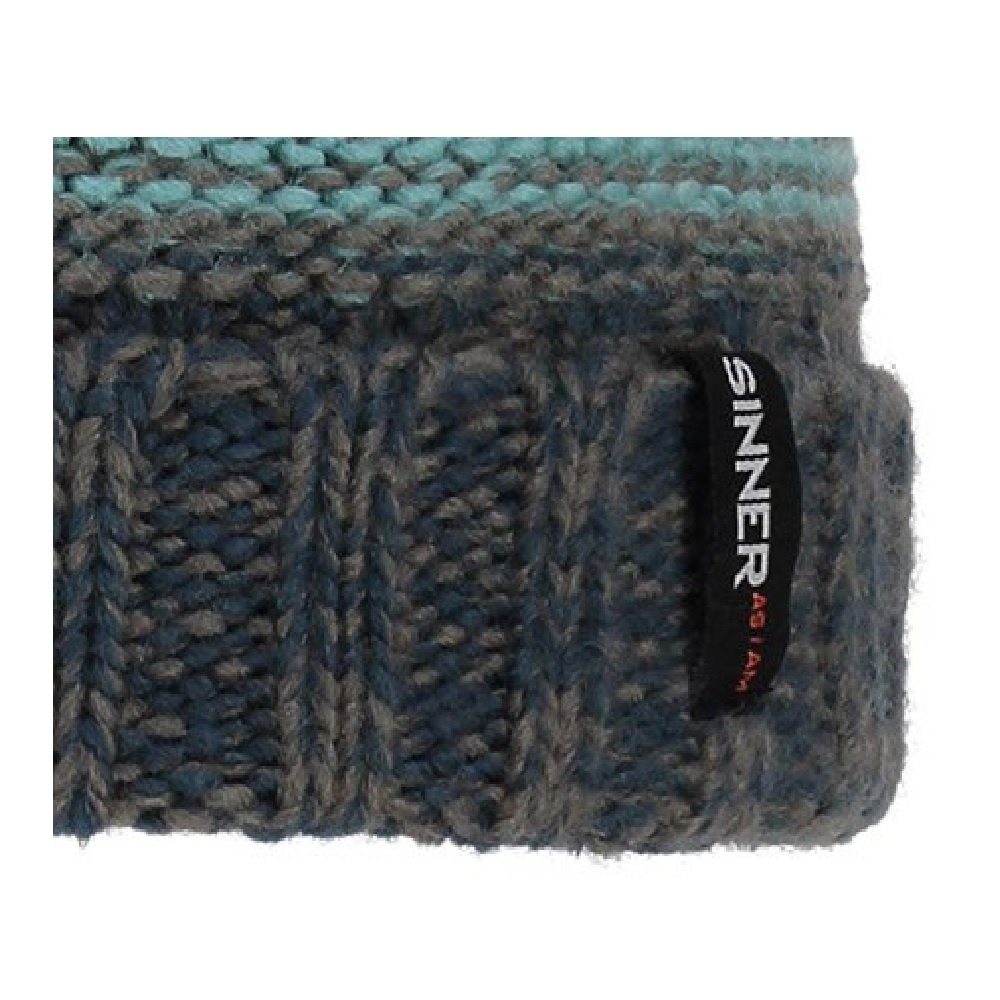 Coarsely hand-knitted, wonderfully warm and made of soft acrylic, that is this multicoloured Sinner resort kids winter beanie with blue accents. The inside of this beanie has a warm fleece lining. Equipped with pompom and Sinner logo.