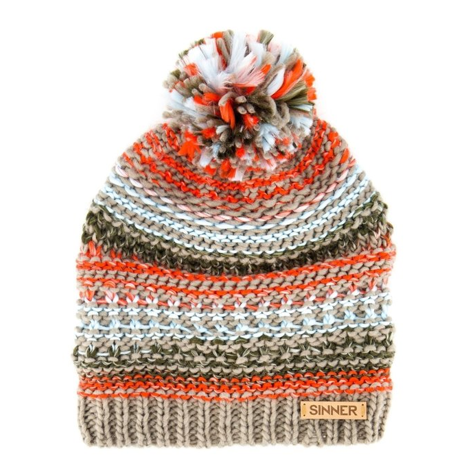 Coarsely hand-knitted, wonderfully warm and made from lovely soft acrylic, that is this grey melange Sierra children's winter hat with pompom top. The inside of this beanie has a warm fleece lining. PU Sinner logo.