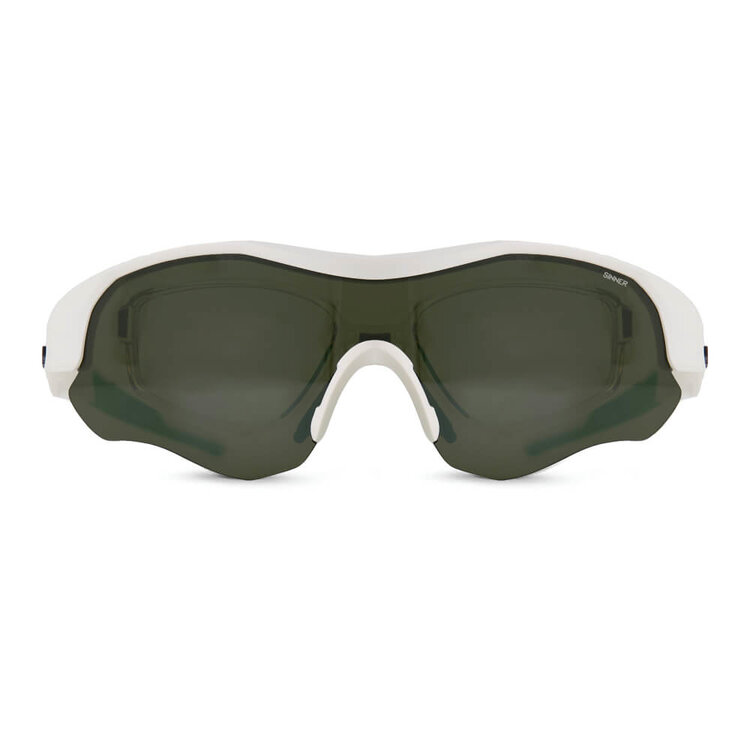 The Sinner Triple II Golf Sunglasses in white and green are fine sunglasses. This Shield model provides wide vision without any distortion and maximum protection. The adjustable non-slip rubber nose pads and rubber feet ensure a good fit and makes sure the glasses stay put.