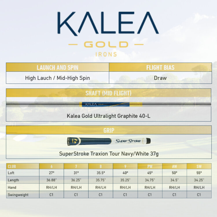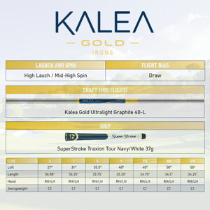 | Shaft | Kalea Gold Ultralite 40 graphite shafts |