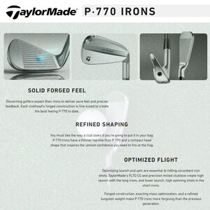 Also in these irons are the Thru-Slot Speed Pockets, applied in the longer irons. These provide even more power and launch force. The combination of the responsive hitting surface and the new design creates a new sweetspot design. This is a remarkable advance over the first generations of the P-770 and ensures consistent ball speeds and accuracy.