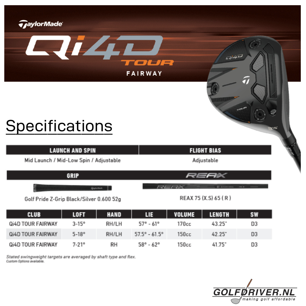 The most advanced fairway wood in TaylorMade's 2026 collection is called the TaylorMade Qi4D Tour Fairway Wood. With this high-tech looking, low spin Tour model, TaylorMade is targeting the better golfer who is looking for more feel and feedback, more control, and even better opportunities to shape their ball flight. The Qi4D series offers a range of fairway wood variants, of which the Qi4D Tour Ti is the most advanced thanks to an adjustable balance in the top of the club head.