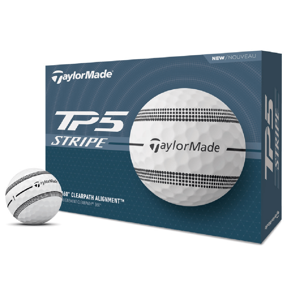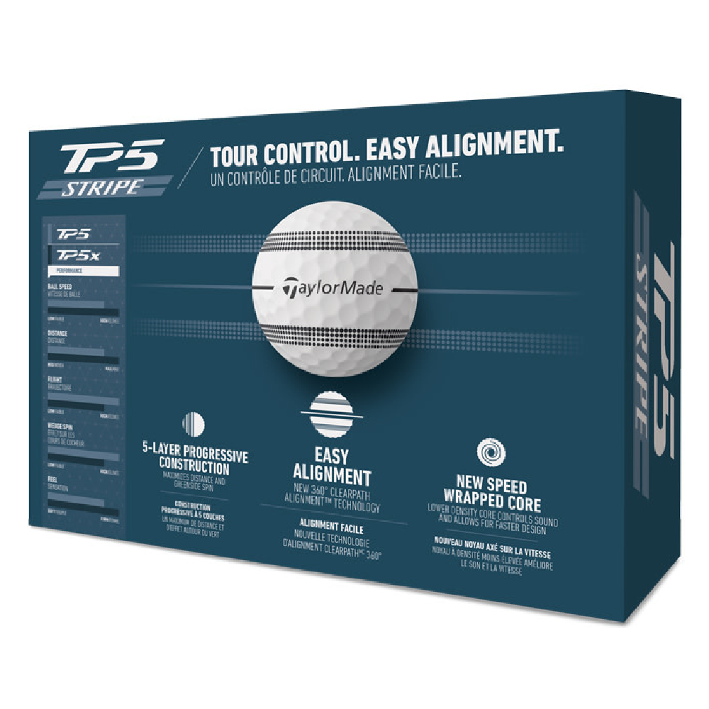 The TaylorMade TP5 Stripe Golf Ball has been substantially improved thanks to the new Soft-Tough Cast Urethane Cover and Speed Wrapped Core. This explosive 5-layer Tour ball has maximum soft-feel with high ball flight for better golfers. Clearpath lines!