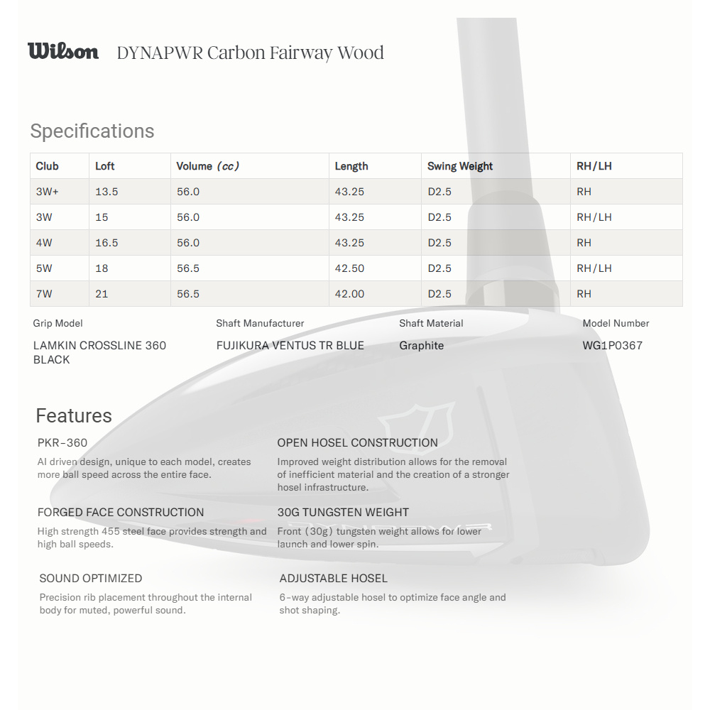 This Wilson DynaPower Fairway Wood 2025 comes standard with UST Lin'Q Red M40X Graphite Shaft (Mid-high flight) with Lamkin Crossline 360 men's grip.