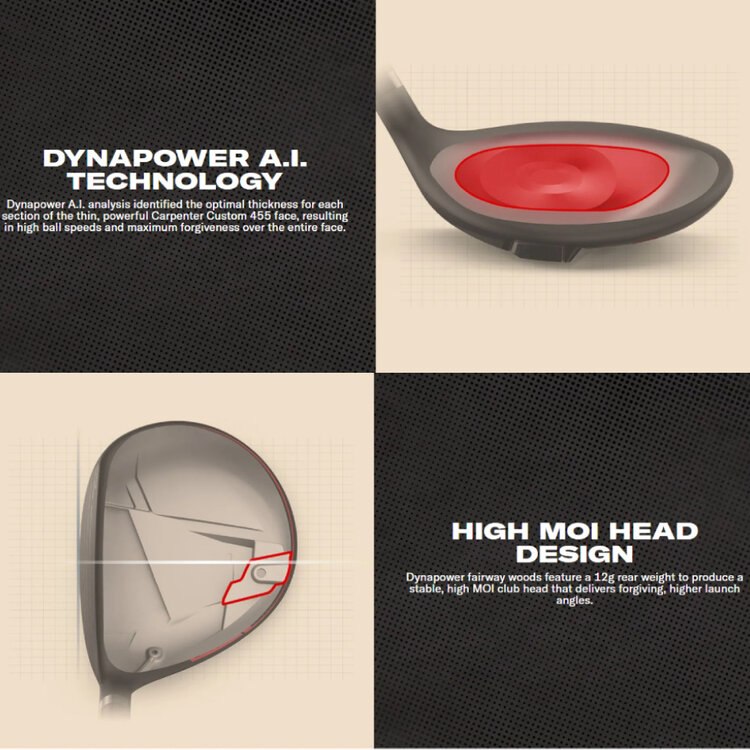 With the fairway woods from the 2023 DynaPWR series, a nice combination can be made with the matching drivers. Looking at the technical platform of the high-tech drivers in this series, many similarities can be seen. For instance, a huge sweetspot ensures plenty of forgiveness, even if you don't hit the ball quite centrally on the clubface. This is caused, among other things, by the Wilson PKR2 Dynamic Face Thickness Innovation which means that with a variable-thickness face, ball speed is maximised without sacrificing forgiveness and stability. Ball flight height has also been kept a little higher by positioning most of the weight at the back of the clubhead. This also creates a bit more margin for not having to hit exactly straight to keep the ball straight.