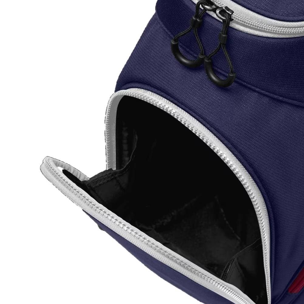This beautifully designed, very sturdy, Wilson I-Lock Cart bag 2025 in navy blue and red is full of useful details, yet light as a feather. The I-Lock cart bags feature a unique anti-rattle top to avoid any loud noises when walking across the golf course with your trolley. Also, keeps the clubs neatly organized.