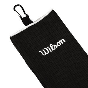 This is the Wilson Trifold 100% Microfiber cotton golf towel with neatly finished, embroidered edge.
