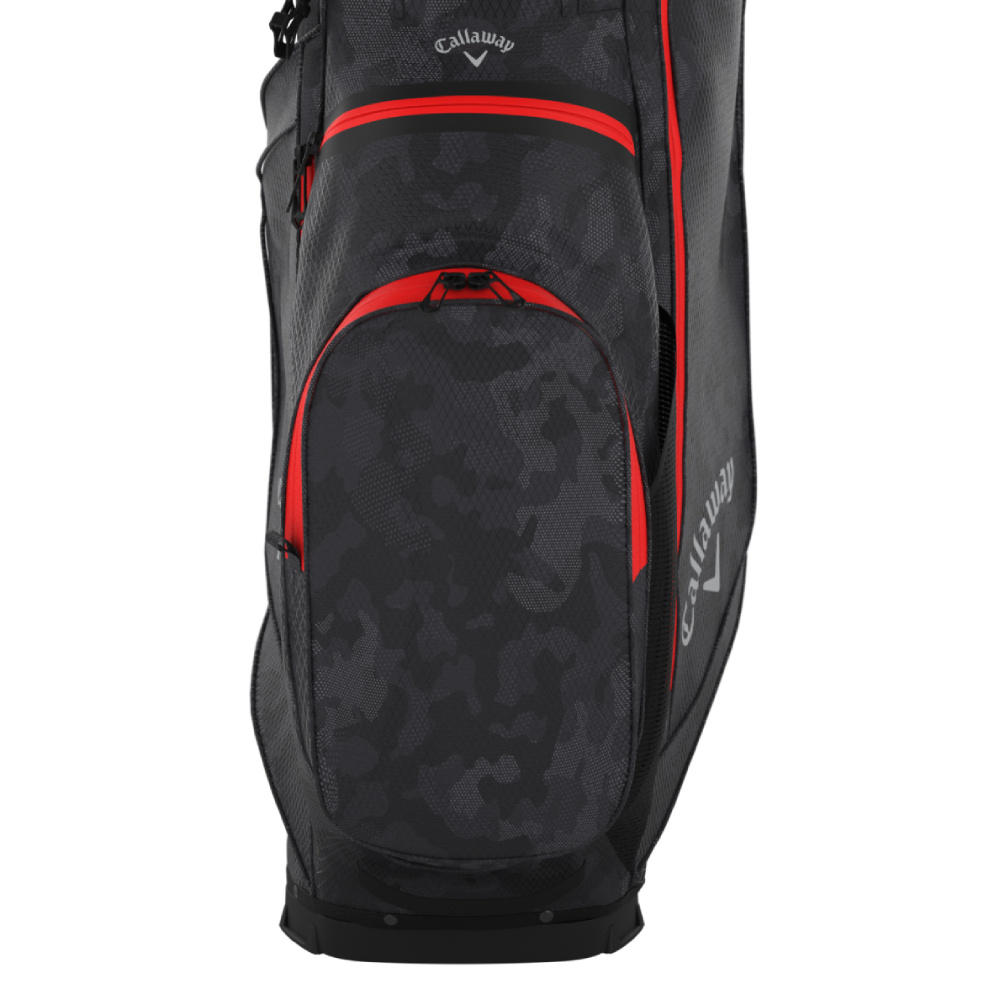 Deze volledig waterdichte, is zwart-grijs-camo met rode accenten uitgevoerde Callaway Fairway C HD (Hyper Dry) 2026 Standbag beschikt over een 4-Vaks top element met doorlopende club-dividers en 9 opbergvakken. Topmerk biedt in deze 2026 uitvoering prachtige gemaakte, waterdichte draagtassen waarvan deze Fairway C HD een wat compactere keus is. De kwaliteit spat er vanaf, ook kritisch kijkt naar deze standbag. Het lichte gewicht (circa 2,2 kg) maakt dit model erg geliefd onder golfers. Gemaakt van zeer stevig en waterbestendig materiaal.