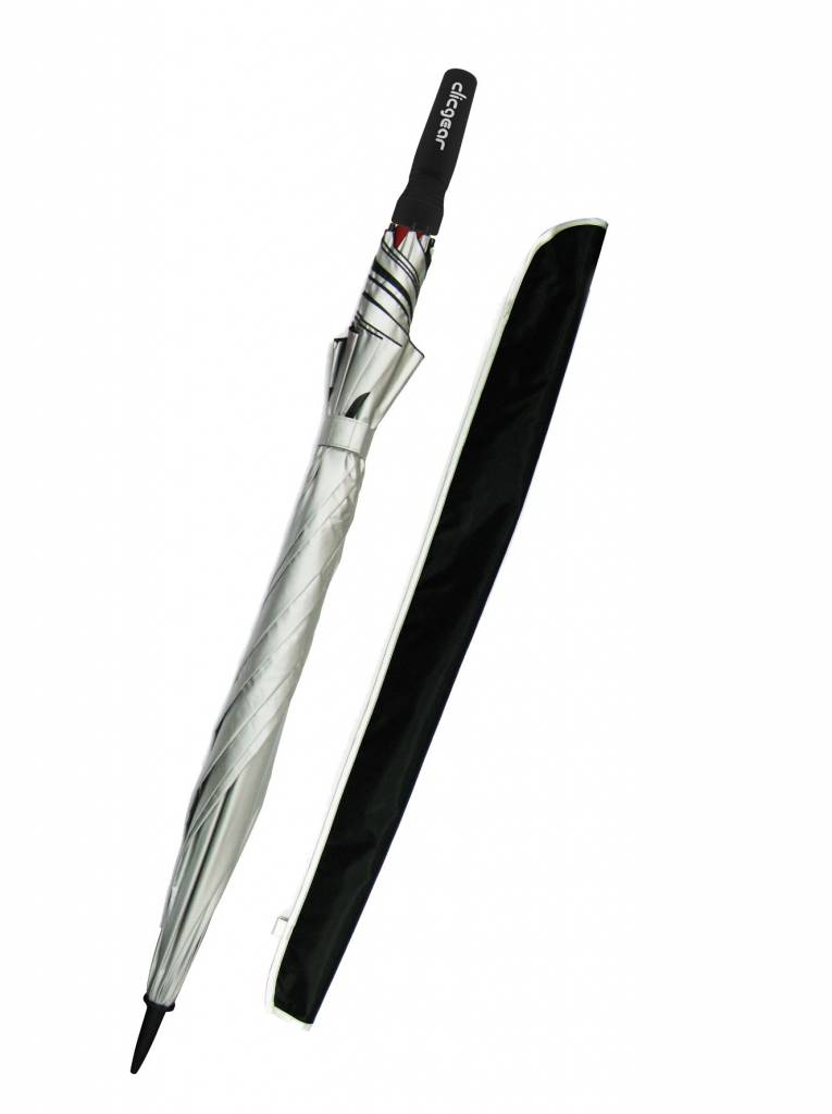 Clicgear heeft als topmerk in golftrolleys en golftassen ook prachtige, stevige golfparaplu's. Mooi als aanvulling op uw Clicgear trolley maar ook zonder trolley fantastisch! Zilverkleurig en enorm in afmeting en Double Canopy dus 2-laags zodat de wind er geen vat op krijgt.
