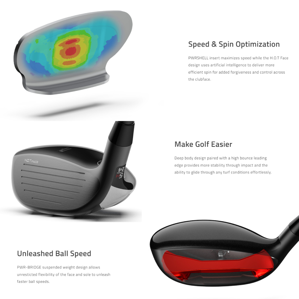 Cobra maakt al vele jaren prachtige, charmante dames golfclubs van hele behoorlijke kwaliteit. Zo ook de 2023 AeroJet Ladies collectie waar deze fraaie dames hybride onderdeel vanuit maakt. Hi-Tech innovaties als de PWR-Bridge, PWR-SHELL en PWR-COR zorgen ervoor dat deze AeroJet Ladies hybride clubs zeer vergevingsgezind zijn waardoor niet zuiver raken van de bal niet direct desastreuze gevolgen heeft voor het resultaat. Ook de stabiliteit en controle in deze clubs zorgen ervoor dat golf leuker en wat gemakkelijker wordt. Resultaat is dat golfers van ieder niveau ermee uit de voeten kunnen. Eenvoudig afstand maken en dat met een wat hogere balvlucht!