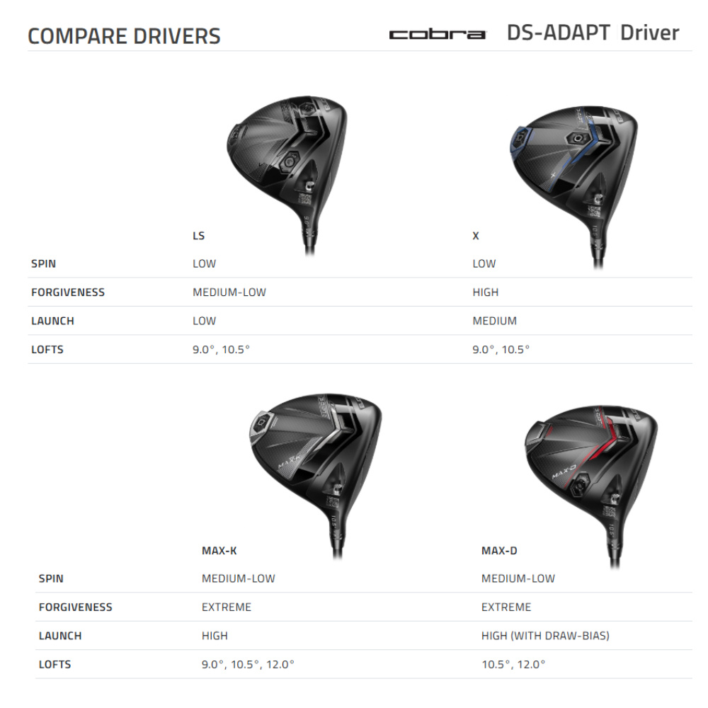 Cobra heeft de DS-Adapt drivers in een paar verschillende versies geïntroduceerd zodat u de keuze kunt maken voor die versie die het best past bij uw niveau en uw bij wensen. Deze DS Adapt Max-K is de meest vergevingsgezinde versie met 10K MOI. Hierdoor blijft de driverkop stabieler als je de bal niet centraal raakt. Dan is er DS-Adapt X ('de gulden middenweg' tussen power, vergevingsgezindheid en stuurbaarheid), de DS Adapt Max-D (versie met lichte Draw-setting, ook wel anti-slice versie genoemd) en de DS Adapt LS (de Low Spin versie voor de ver gevorderde golfers). Keus genoeg dus dit seizoen!