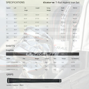 Met deze 3e generatie T-Rail hybride-ijzers (V3) blijft Cobra zich inzetten voor die groep golfers die gewoon zo eenvoudig mogelijk speelbare ijzers zoekt. Naast de 'conventioneel uitziende' ijzers zien deze T-Rail hybride-ijzers er heel anders uit omdat hier zichtbaar gebruikt gemaakt is van de voordelen van zowel ijzers als van hybride clubs. Gevolg is een wat groter clubhoofd maar wel een effectief betere speelbaarheid voor voornamelijk starters en golfers met wat hoger handicap.