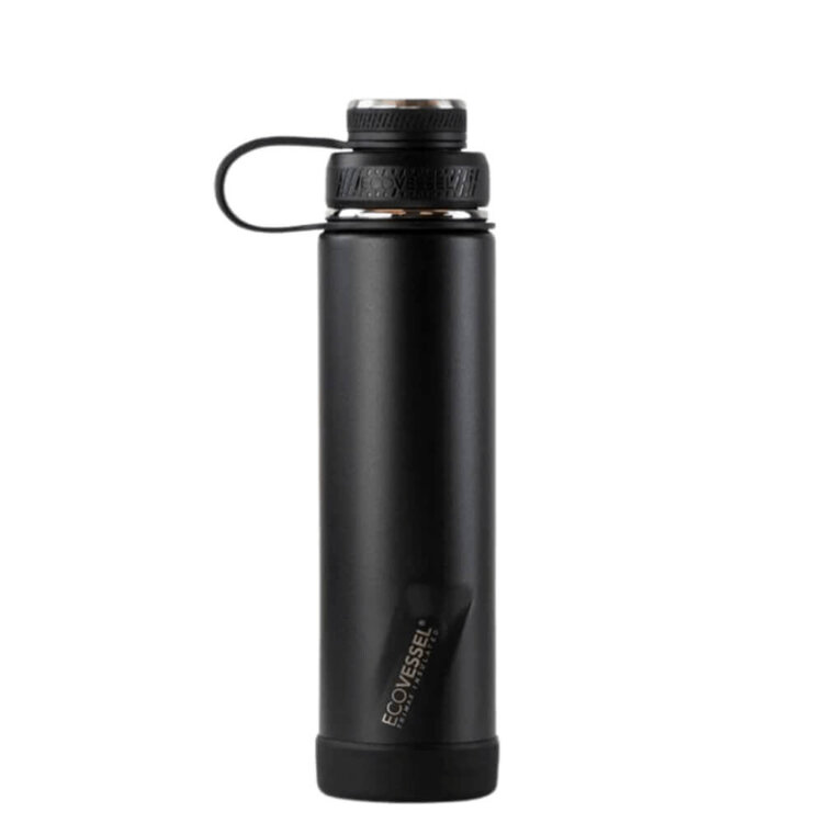 Houdt uw koffie, thee of andere warme of koude drank lang op temperatuur met deze EcoVessel 'The Boulder' RVS Waterfles in luxe, zwarte uitvoering. Hij ziet er prachtig uit maar is kwalitatief ook van het allerhoogste level. Op het hoogste niveau geïsoleerd met de TriMax technologie en maar liefst 709cc inhoud. Gemaakt van roestvrijstaal (RVS), zowel van binnen als van buiten en voorzien van zeefje voor thee, fruit of ijs. Kunststof drinktuit voor comfortabel drinken.