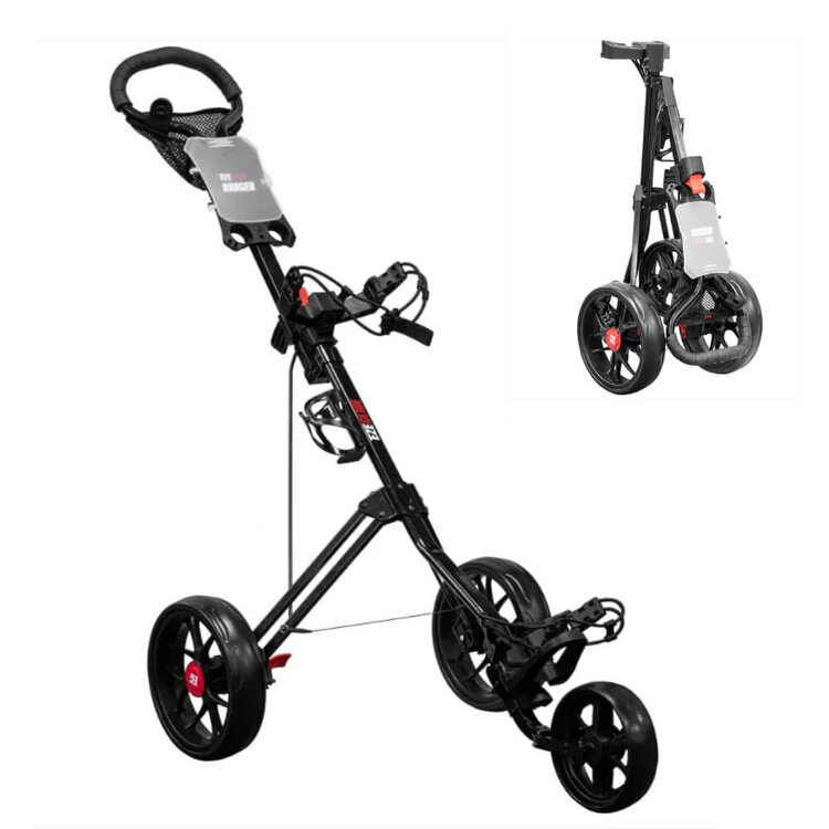De Eze Glide Ranger 3-wiels golftrolley is een scherp geprijsde trolley met een reeks functies en een lichtgewicht stevige frameconstructie. Dankzij het opklapmechanisme kan de trolley in enkele seconden in of uitgevouwen worden. Verder is deze golfkar voorzien van een opbergruimte voor golfballen, een opbergvak voor andere accessoires, scorekaarthouder en een bekerhouder. Brede wielbasis zorgt voor optimale stabiliteit en eenvoudige wendbaarheid. Zijwieltjes met snelsluiting voor eenvoudig opbergen.