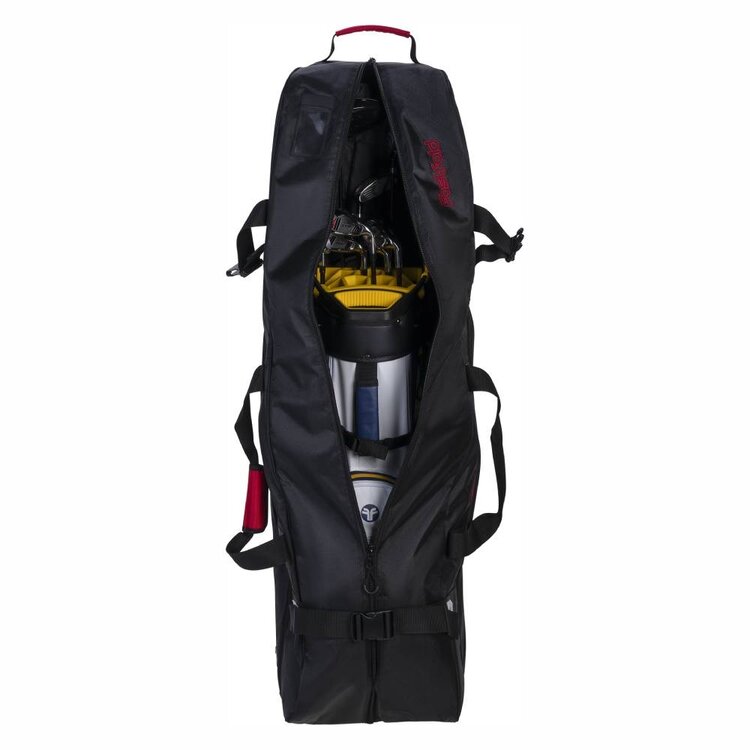 De FastFold Padded Travelcover is een mooie grote beschermhoes. Deze travelcover beschermt uw golftas en -clubs tijdens vakanties of golftripjes en is voorzien van grote buitenvakken. Voor het gemak zitten er wieltjes onder deze travelcover.