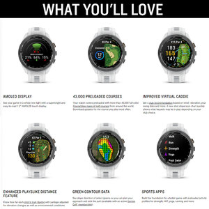 Het meest geavanceerde golfhorloge van dit moment heet de Garmin S-70 GPS Golf Watch. In deze grijze 42 mm uitvoering echt een handige alleskunner die dankzij een eenvoudig opgezette menu besturing een hele lange lijst aan mogelijkheden kent. Het AMOLED touchscreen heeft een enorm hoge beeldkwaliteit, prachtige kleuren en hoog contrast. Dit laatste zorgt voor goede leesbaarheid, ook bij fel zonlicht.