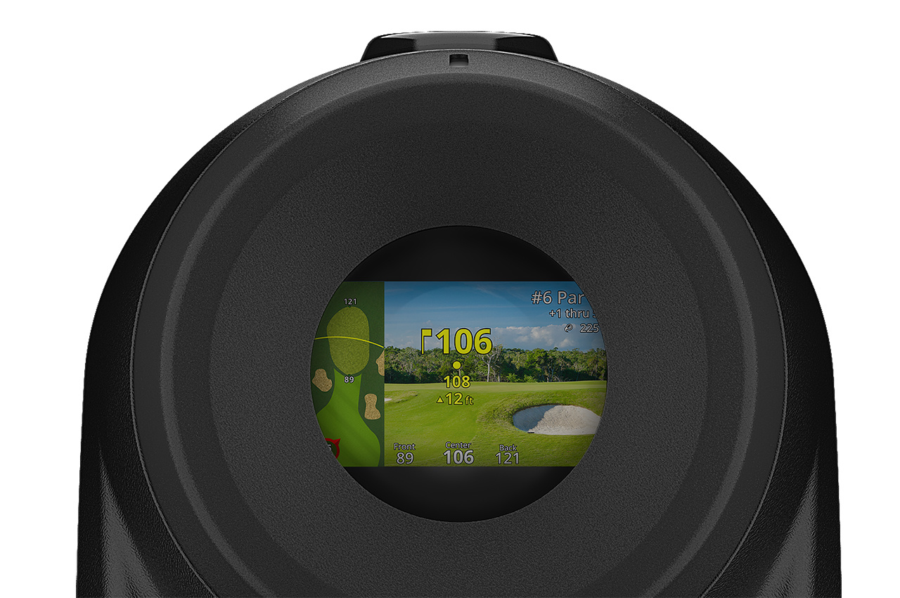 Dankzij beeldstabilisatie kunt de vlag gemakkelijker vinden in uw vizier en de afstand meten. De slimme vlagzoeker zet automatisch de vlag van elke hole vast. Nadat de vlag is vastgezet, voegt de zoeker een gedetailleerde 2D weergave van de greenlay-out toe, plus afstanden tot het begin en einde van de green. Het beeld in de zoeker toont de hole 6 keer vergroot voor een duidelijke, heldere weergave, aangevuld met kaartoverlays die de lay-out van de hole laten zien.