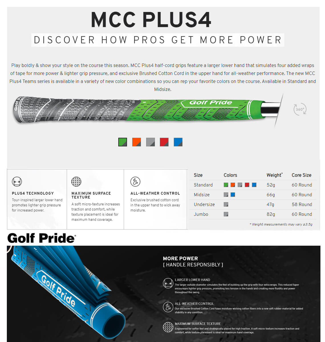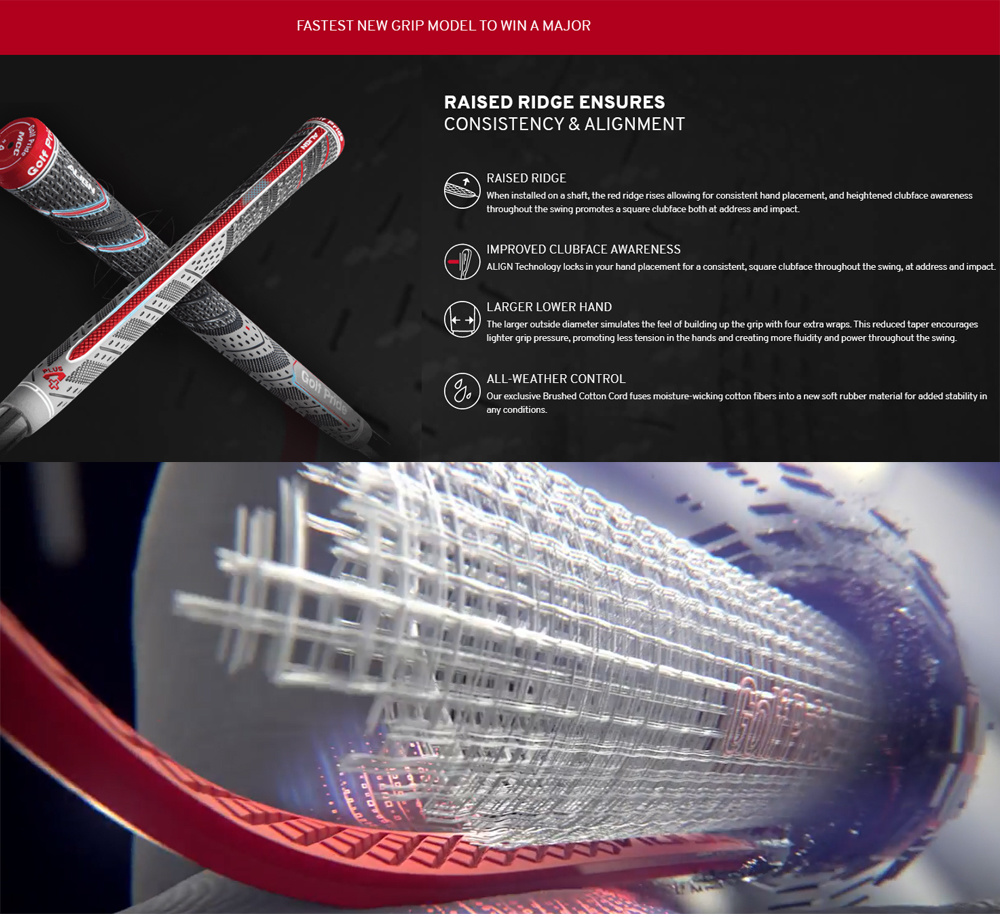 Dit is de Align-uitvoering van de wat dikkere, grijze GolfPride MultiCompound Plus4 MidSize Grip is geschikt voor ijzers en alle woods. Een rode, geprofileerde rubberbaan onder op deze grips maakt het gemakkelijker om uw handen in de juiste lijn te zetten. Een wat steviger, fijner aanvoelende grip met meer profiel die zachter aanvoelt dan de standaard MCC grips en dikker is aan de shaft-kant (less-taper). Hierdoor is de MCC Plus-4 grip aan de onderzijde en aan de bovenzijde nagenoeg even dik.