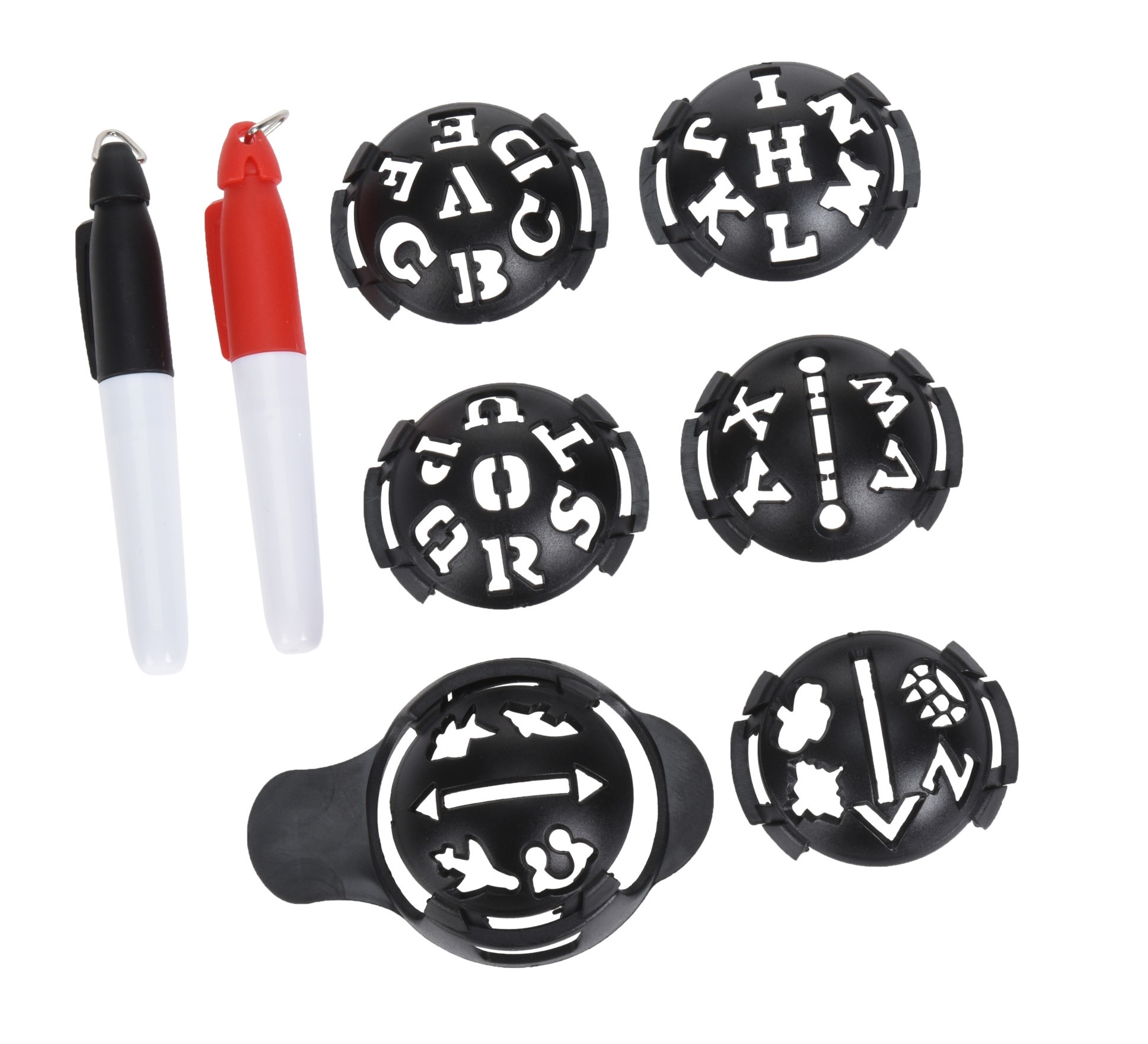 Markeer uw ballen met 'uw' teken om ze uit elkaar te houden met deze zwarte Legend Marker Ball System / lijn markeerder.