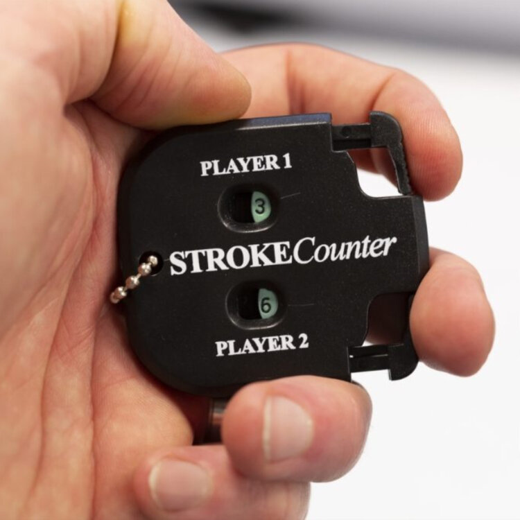 Mooie zwart scoreteller van Longridge voor het bijhouden van het aantal slagen van 2 spelers op iedere hole.