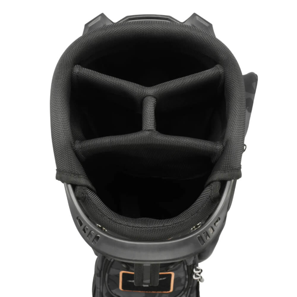 Dat Mizuno als één van de grootste sportfabrikanten ter wereld bekend staat als een merk die topkwaliteit producten levert, is geen geheim. Dat geldt zowel in de golfindustrie als voor alle andere sporten waarin Mizuno actief is. De populariteit van het merk Mizuno groeit hard in Nederland en ook dat geldt niet alleen voor hun golfproducten. Deze in camo-zwart met koperaccenten uitgevoerde Mizuno BR-D3 standbag van de Mizuno 2025 golftassen collectie ziet er dankzij het fraaie design erg goed uit. Daarnaast zijn ze ook ruim qua opbergruimte en gemaakt van mooie, stevige materialen. Dat compacte, maar ook wel ruime, 4-vaks clubverdeler en het zeer comfortabele draagsysteem maken deze golftas erg handig.