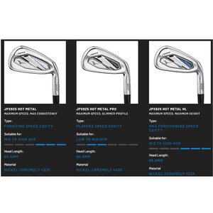 Met een hele lijst aan verbeteringen is wel duidelijk dat Mizuno de JPX-925 Hot Metal ijzers behoorlijk heeft verbeterd. Deze JPX-925 Hot Metal, die binnen de JPX line-up de meest vergevingsgezinde versie vertegenwoordigt, geeft startende tot (enigszins) gevorderde golfers nog meer speling in het zuiver raken van de bal. Een clubhoofd met nóg grotere sweetspot minimaliseert mishits en dát maakt golf een stuk leuker. Dit topklasse fabricaat kent een prachtig afwerkingsniveau waardoor vooral de ijzersets een steeds grotere schare enthousiaste fans kent.