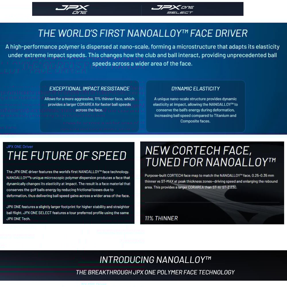 Er zijn twee verschillende driverkop-varianten. Deze JPX One is de meest vergevingsgezinde van de twee met zijn wat hogere, meer voorspelbare balvlucht. De JPX One Select heeft meer een Tour-profiel: iets compacter en met een vorm en balans die zorgt voor minder spin en meer stuurbaarheid en 'playability'.